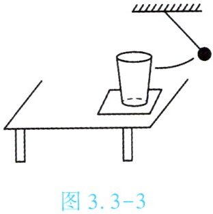 5. 随着生活水平的日益提高,不少场所的装修会考虑声学吸音效果。小明同学想比较几种常见装修材料的吸音性能,他找来厚度相同的四种小块材料(聚酯棉、软木和泡沫塑料),进行了如图3.3-3所示实验:桌面上放一个玻璃杯,在玻璃杯下分别放上待测试的小块材料,将悬挂在细线下的小球拉到同一高度释放去敲击玻璃杯,仔细比较玻璃杯发出的声音大小。