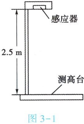 2. (2023·安徽)图3-1所示为一种身高测量仪,其顶部的感应器竖直向下发射超声波信号,经下方物体反射后返回,被感应器接收。某同学站上测高台,感应器记录信号从发射到接收所经历的时间为$5×10^{-3}\ s$。已知感应器距测高台的高度为$2.5\ m$,空气中的声速取$340\ m/s$,则该同学的身高为【