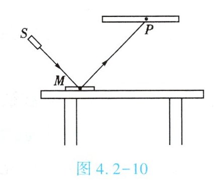 4. (★★★)如图4.2-10所示,平面镜M放置在水平桌面上,光源S发出一束激光射到镜面上,经反射后在标尺上形成光斑P。为了让光斑P向右移动,下列方法可行的是【