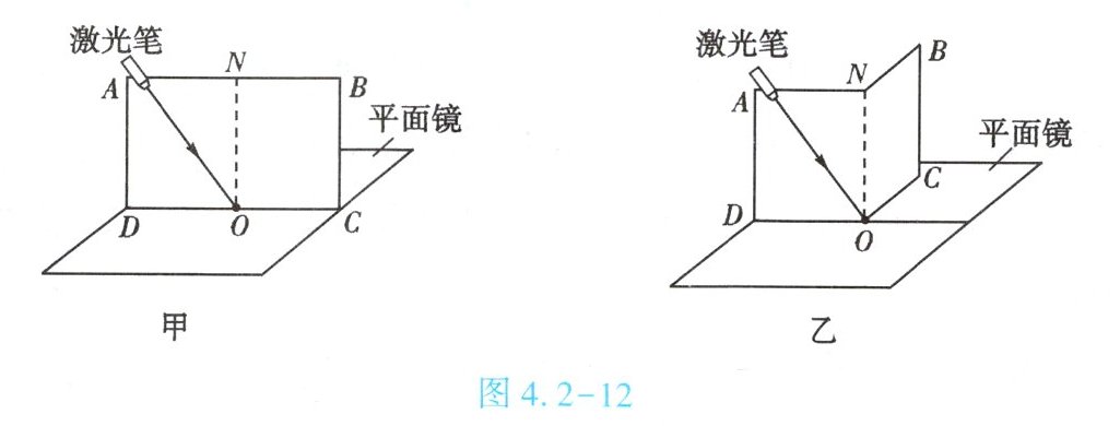 。(4)在图4.2-12甲中,若将纸板(连同激光笔)绕CD向后倾斜,此时反射光束