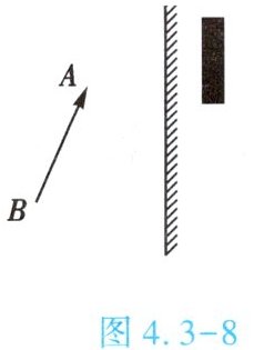 5. (★★)(2024·江苏南京)如图 4.3 - 8 所示,平面镜后方有一不透明的挡板,画出物体 $ AB $ 通过平面镜所成的像 $ A'B' $。