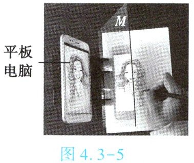 2. (★★)如图 4.3 - 5 所示是“临摹神器”,将平板电脑和镜 $ M $ 放在支架上调节到适当角度,则平板电脑屏幕中的物体通过镜 $ M $ 成的