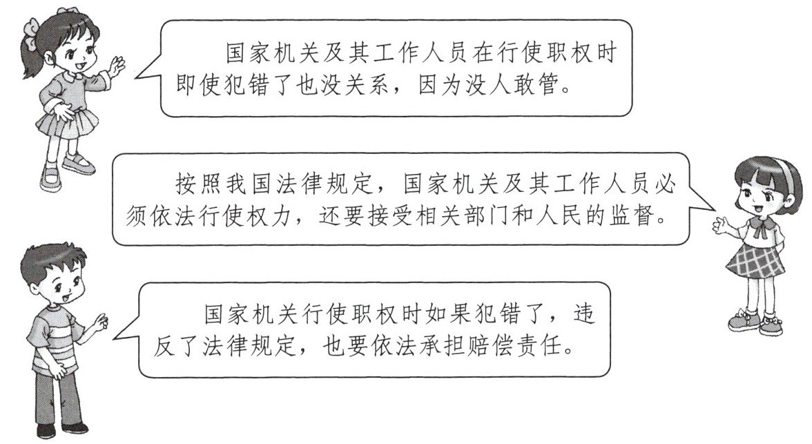 放学路上,几名同学就“国家机关在行使职权时是否会犯错、犯错了应该怎么办”等问题展开了讨论,提出了自己的看法。