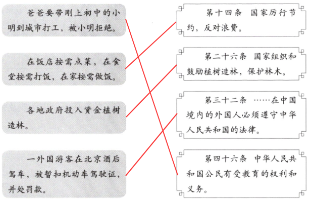 找出下列情境对应的宪法条款,连一连。