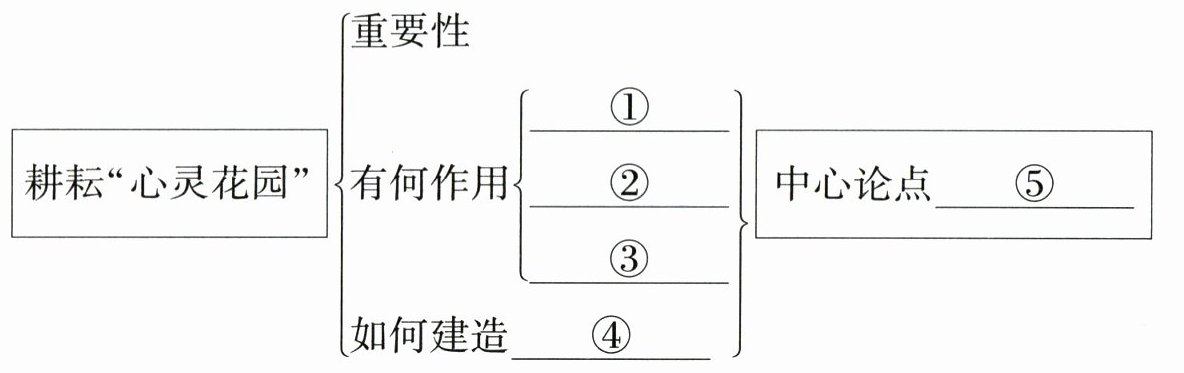 14.对比论证、比喻论证。将我们的心灵比作一片土地,同时将在心灵种下杂草和种下花朵导致的不同结果进行对比,生动形象、鲜明突出地论证了自己才是自己心灵的“主人”这一分论点,进而论证每个人应该在自己内心耕耘一片“心灵花园”这一中心论点。