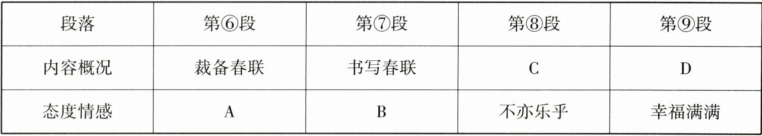 15. 阅读第⑥~⑨段,填写表格。(4 分)
