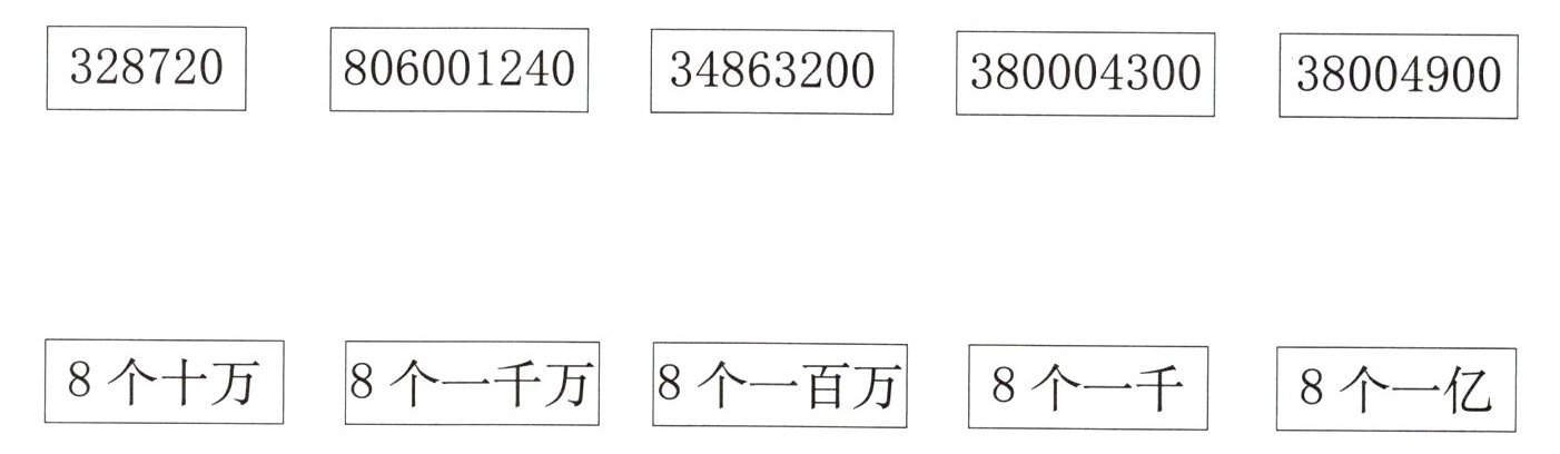$\boxed{8 个十万}$ $\boxed{8 个一千万}$ $\boxed{8 个一百万}$ $\boxed{8 个一千}$ $\boxed{8 个一亿}$