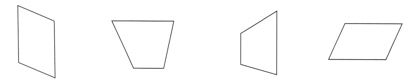 长方形,正方形,平行四边形,梯形;长方形,正方形