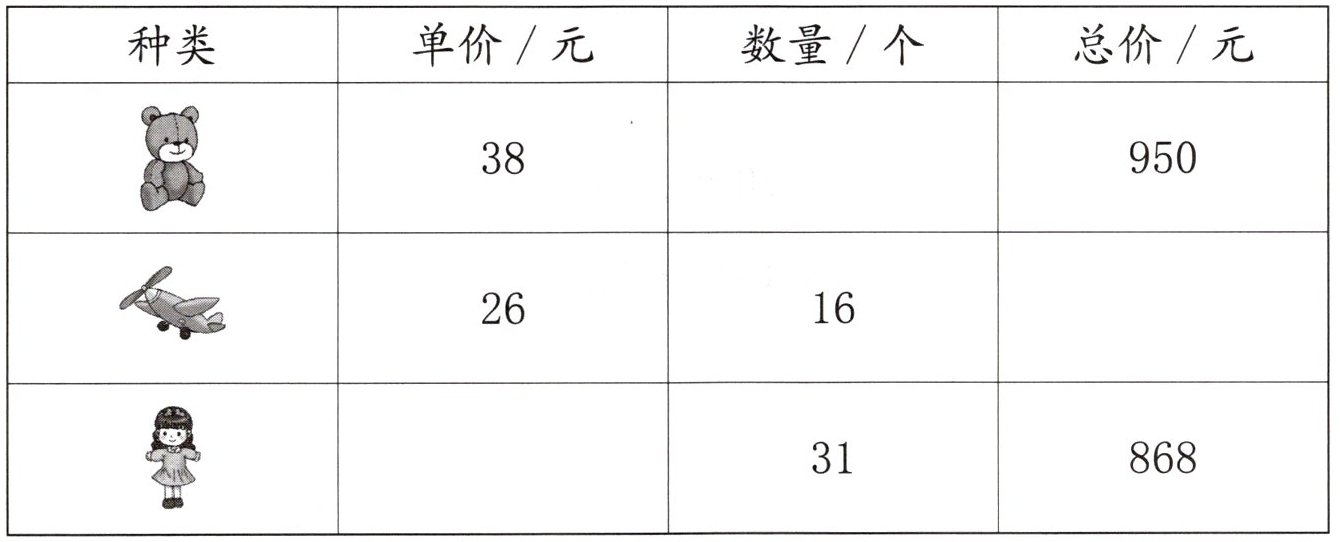 六、下面是某玩具商店本月出售商品记录表,请把表填完整。