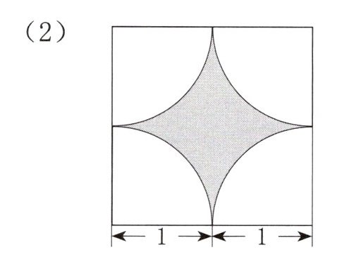图形为正方形内中间涂色部分,正方形边长$ = 1 + 1 = 2\,cm $,四个角的扇形合为一个整圆(半径$ r = 1\,cm $)。