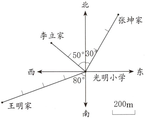 1.(1)右图中,以小猴家为观测点,小松鼠家在(