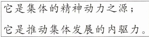 (2)建设美好集体,要坚持集体主义原则,发扬集体主义精神。当个人利益与集体利益发生冲突时,应把集体利益放在个人利益之上。
