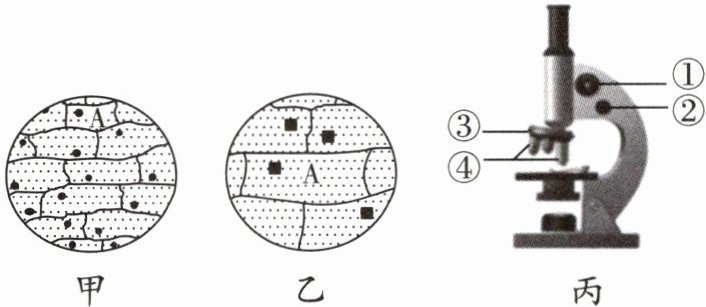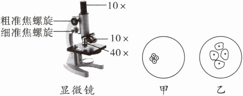 3. 用单目显微镜观察人口腔上皮细胞临时装片时,在不同放大倍数下,观察到甲、乙两个视野(如下图)。下列描述正确的是(