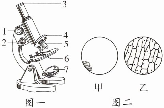11. (山东济南中考)洋葱是生物实验中常用的材料。某同学想探究洋葱表皮细胞的结构,于是,按照实验的目的和要求,动手制作了临时装片,并用显微镜进行观察,请回答下列问题([ ]内填数字):