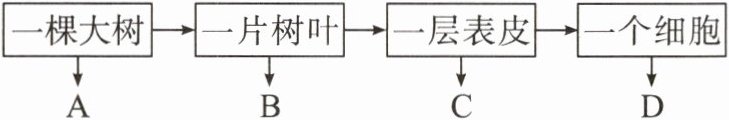2. “根深叶茂,树干粗壮”是对一棵大树的整体性描述。如下图所示的结构层次中,属于器官的是(