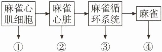 5. “麻雀虽小,五脏俱全”是对麻雀的整体性描述。如下图所示的结构层次中,属于器官的是(