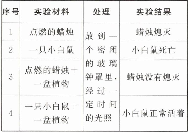 5. 1771年,英国科学家普里斯特利做了一个经典实验(如表),实验得出的结论是(