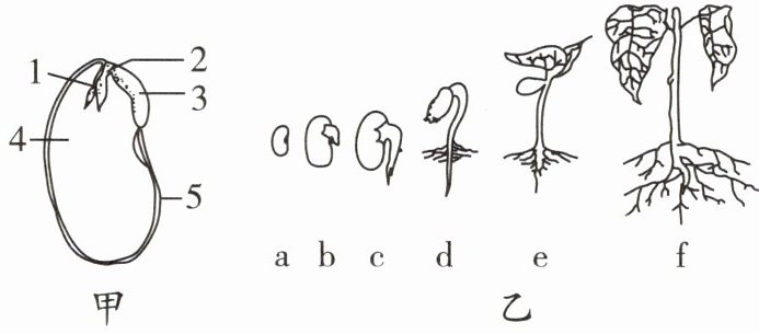 5. 下图中的甲和乙分别是菜豆种子的结构及其萌发成幼苗各阶段的示意图,下列相关说法正确的是(