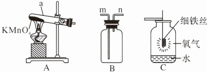 (填“m”或“n”)。(4) 图 C 中,细铁丝剧烈燃烧,