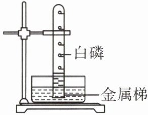 2. 【实验变式题】小明为测定空气里${O_{2}}$的含量,设计了如图所示的实验装置。“金属梯”的每一步的凹处放置一颗用滤纸吸干水后的白磷,用放大镜会聚太阳光于靠近水面的一步“金属梯”处的白磷上。下列说法错误的是(