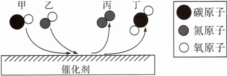 6. 汽车尾气中部分气体发生转化的微观过程如图,回答问题。
