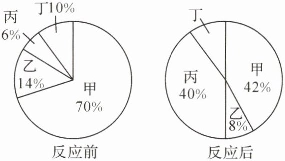 7. (2024·龙东)密闭容器内有甲、乙、丙、丁四种物质,在一定条件下充分反应,测得反应前后各物质的质量分数如图所示。下列说法错误的是(