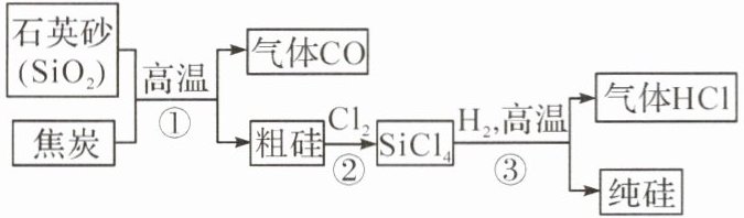 5. 【化学与工程技术】(2024秋·阜新期末)太阳能光伏发电最关键的材料是高纯硅。下图是工业上以石英砂(${SiO_{2}}$)为主要原料制取纯硅的一种方法。