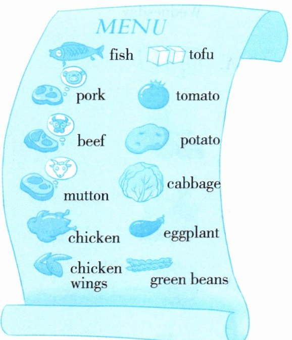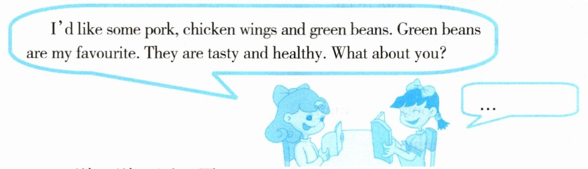 2. (示例)I'd like some chicken and eggplant. Chicken is tasty. Eggplant is my favourite. What about you?