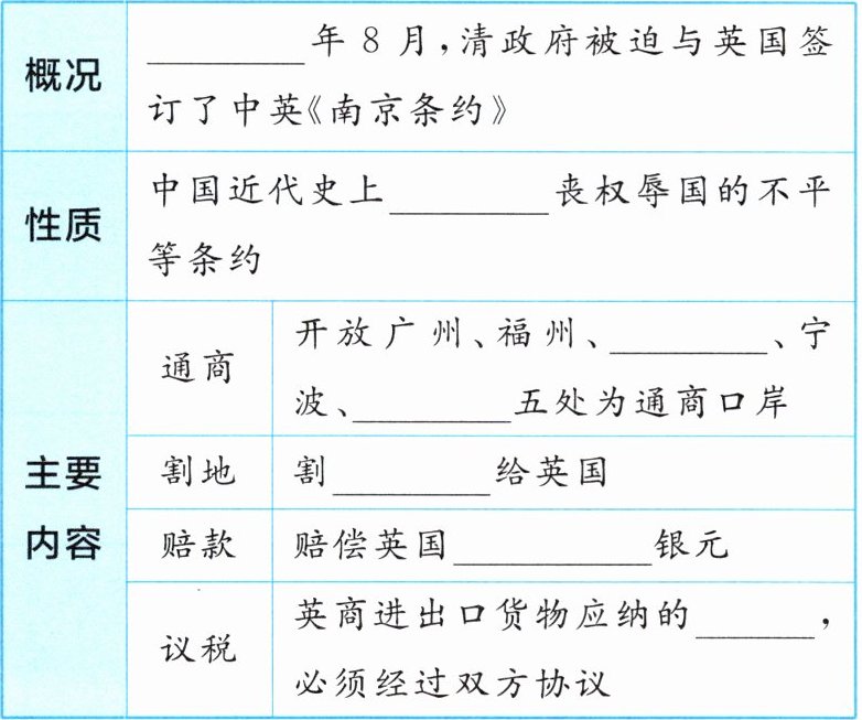 |概况|____年8月,清政府被迫与英国签订了中英《南京条约》|