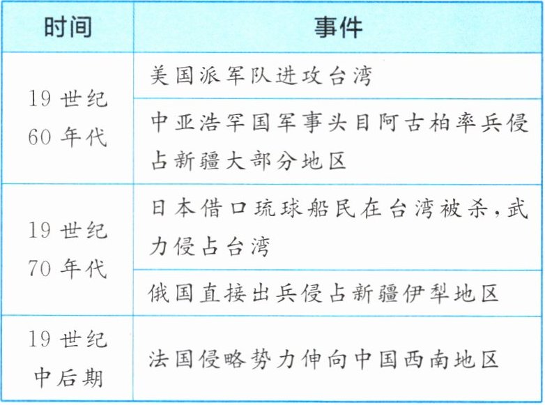 | 19世纪70年代 | 日本借口琉球船民在台湾被杀,武力侵占台湾 |