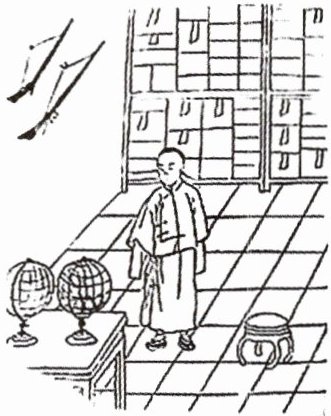 6. (2024·重庆B卷·中考,有改动)右图所示为1902年发行的儿童读物《启蒙画报》中的一幅图画。在一个书房里,墙上挂着火枪,中间站着一位意气飞扬的少年,他正注视着桌上的地球仪。图画作者意在( )