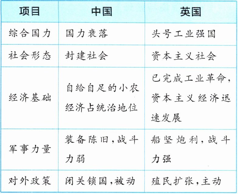 |军事力量|装备陈旧,战斗力弱|船坚炮利,战斗力强|