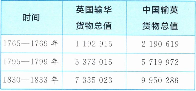 (1)主要特点:中英正当贸易额持续增长,中国处于明显出超地位(或英国处于明显入超地位)。标题:鸦片战争前中英两国实力的对比。