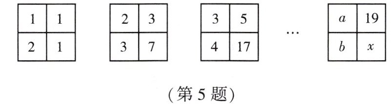 5. 如图,各正方形中的四个数之间都有相同的规律,根据此规律,$x$的值为(
