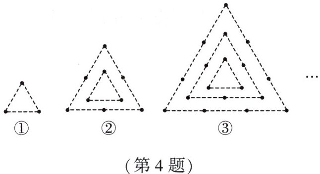 4. 下列图形是由同样大小的棋子按一定规律组成的,其中第①个图形有$3$颗棋子,第②个图形有$9$颗棋子,第③个图形有$18$颗棋子……则第⑥个图形中棋子的颗数为(