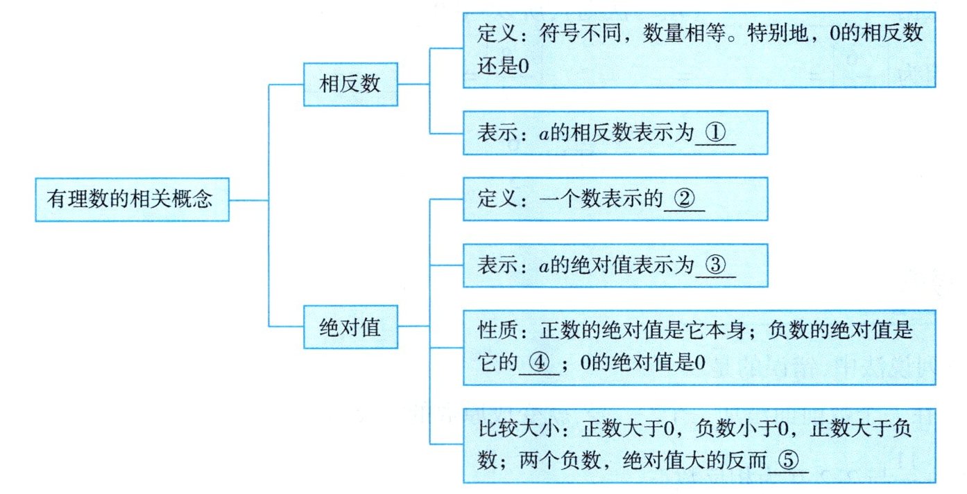 ① -a;② 在数轴上所对应点到原点的距离;③ |a|;④ 相反数;⑤ 小
