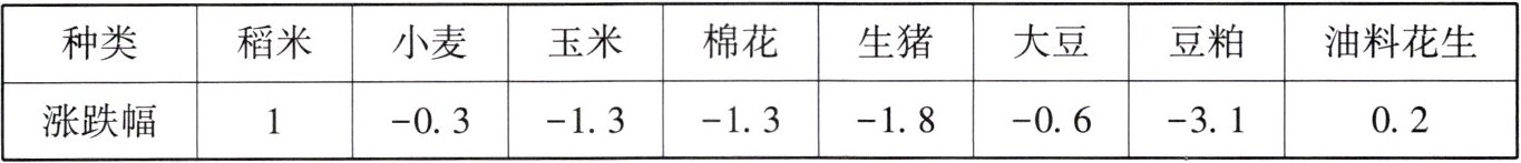 4. 下表是$2024年9$月某一周与上一周全国农产品价格变化情况统计表。