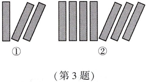 3. 我国古代用算筹(小棍形状的记数工具)正放表示正数,斜放表示负数。如图,图①可列式计算为$(+1)+(-2)= -1$,由此推算图②可列式计算为(