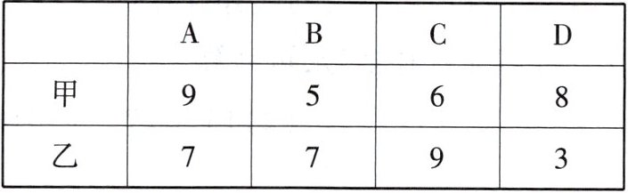 10. 甲、乙两位同学合作为班级联欢会制作$A$,$B$,$C$,$D$四个游戏道具,每个道具的制作都需要拼装和上色两道工序,先由甲同学进行拼装,拼装完成后再由乙同学上色。两位同学完成每个道具的工序需要的时间(单位:分钟)如下表所示: