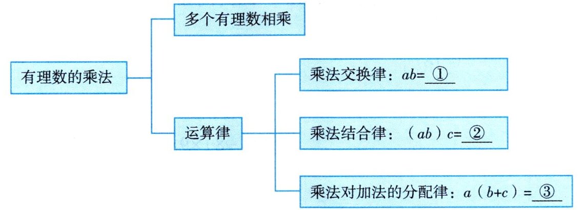 几个不为零的数相乘,负因数的个数为奇数时,积为负,并把绝对值相乘;乘法交换律;乘法结合律