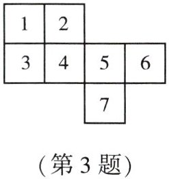 3. 如图由7个小正方形组成,现要将它折成一个正方体,则应剪去的小正方形的编号不能是(