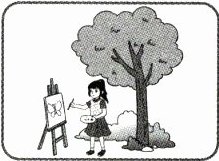 ) 3. Xiaoli is drawing under the tree.(