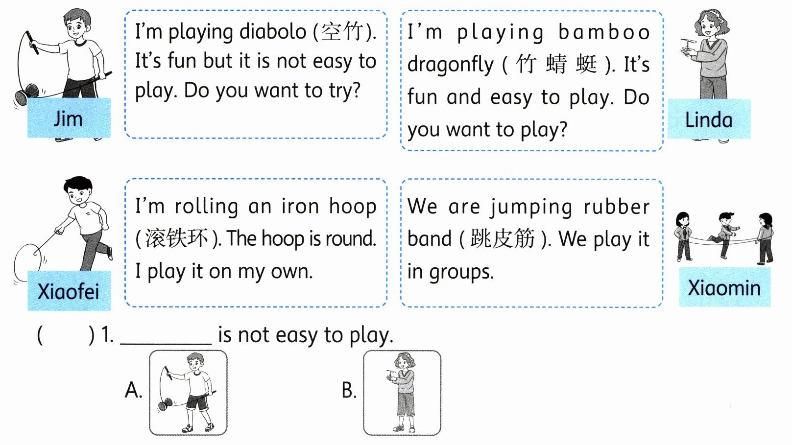 ) 3. Who is playing bamboo dragonfly?A. Jim. B. Linda.