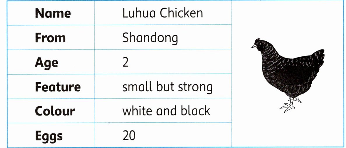 Ⅵ. Read and tick or cross. Max 在家里养了一只芦花鸡。读一读,判断描述与Max 的记录是否相符,相符的画“√”,不相符的画“×”。