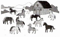 1. 圈出 12 只狗 2. 圈出 18 只鸡 3. 圈出 11 匹马