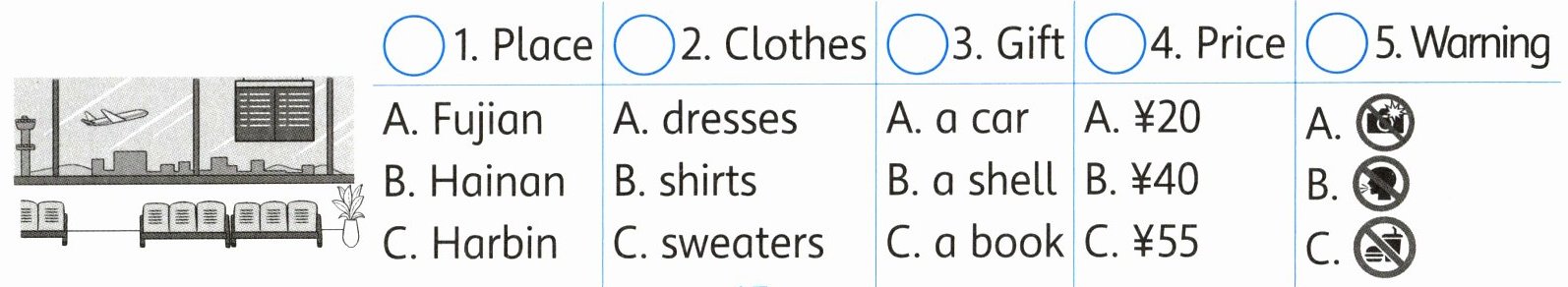 Ⅲ. Listen and choose. 听一听,选出与录音内容相符的选项,将字母序号写在圆圈里。(10 分)