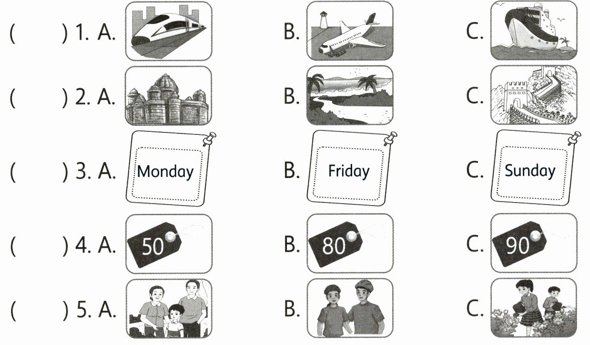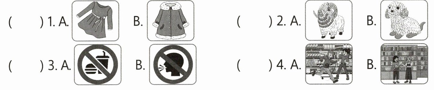 Ⅱ. Listen and choose. 听一听,选出与录音内容相符的图片,将字母序号写在括号里。(10 分)