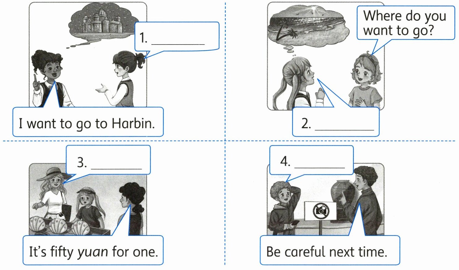 Ⅳ. Read and choose. 读一读,选出与图片相符的句子补全对话,将字母序号写在横线上。(12 分)