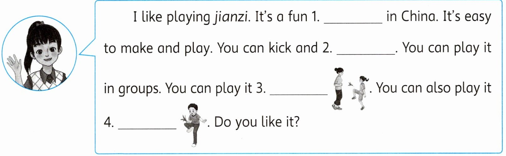 Ⅳ. Read and choose. 你知道 Xiaoli 喜欢玩什么吗?读一读,选择正确的单词或短语补全短文,将字母序号写在横线上。