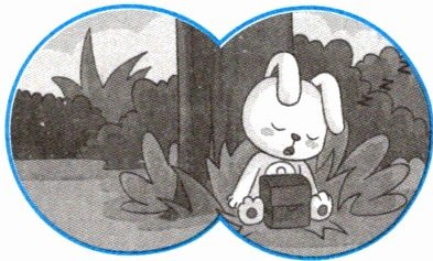 ) 2. — Look, what is the rabbit doing?— They're getting food. — He's singing.